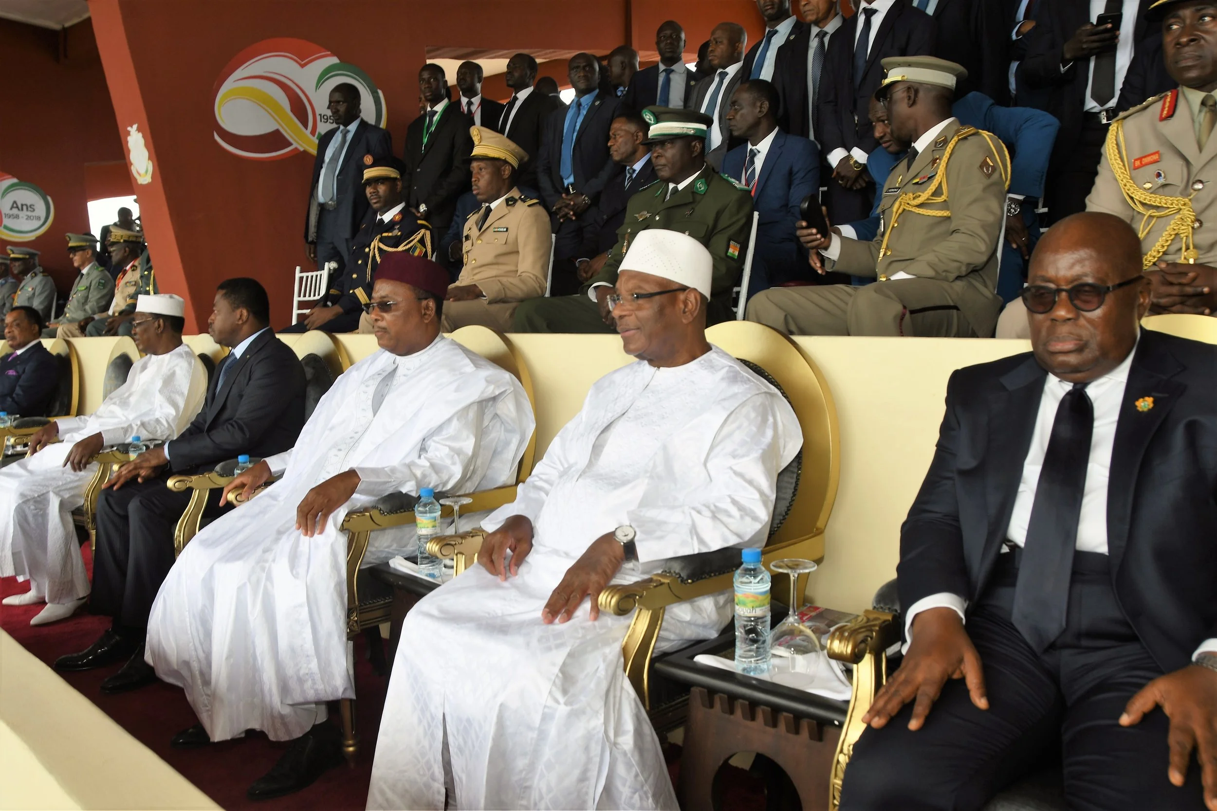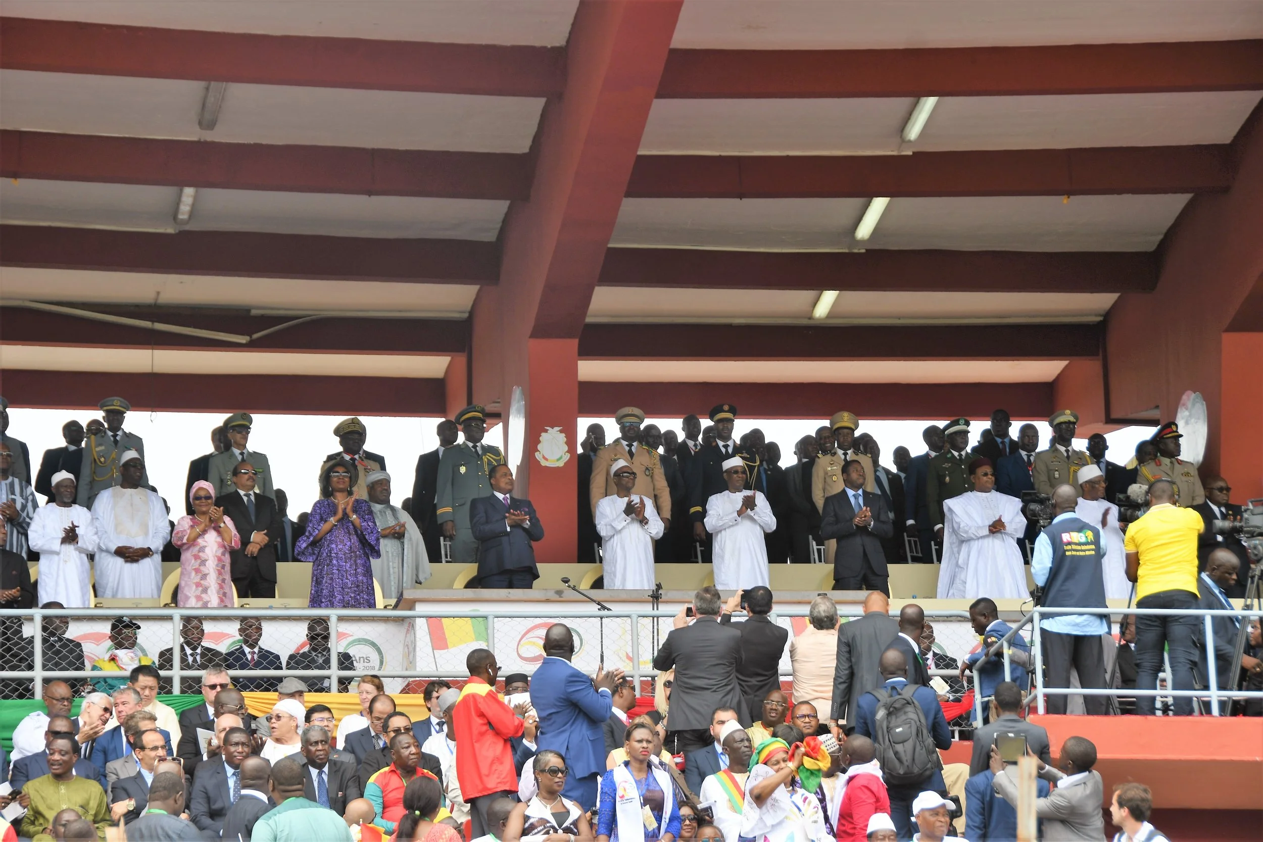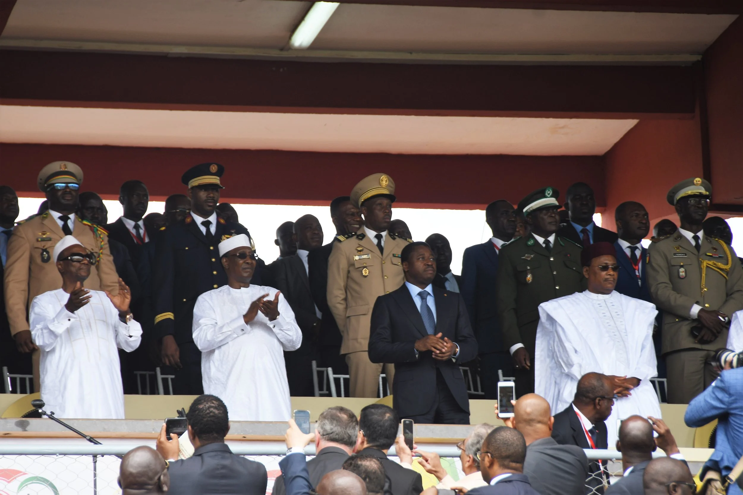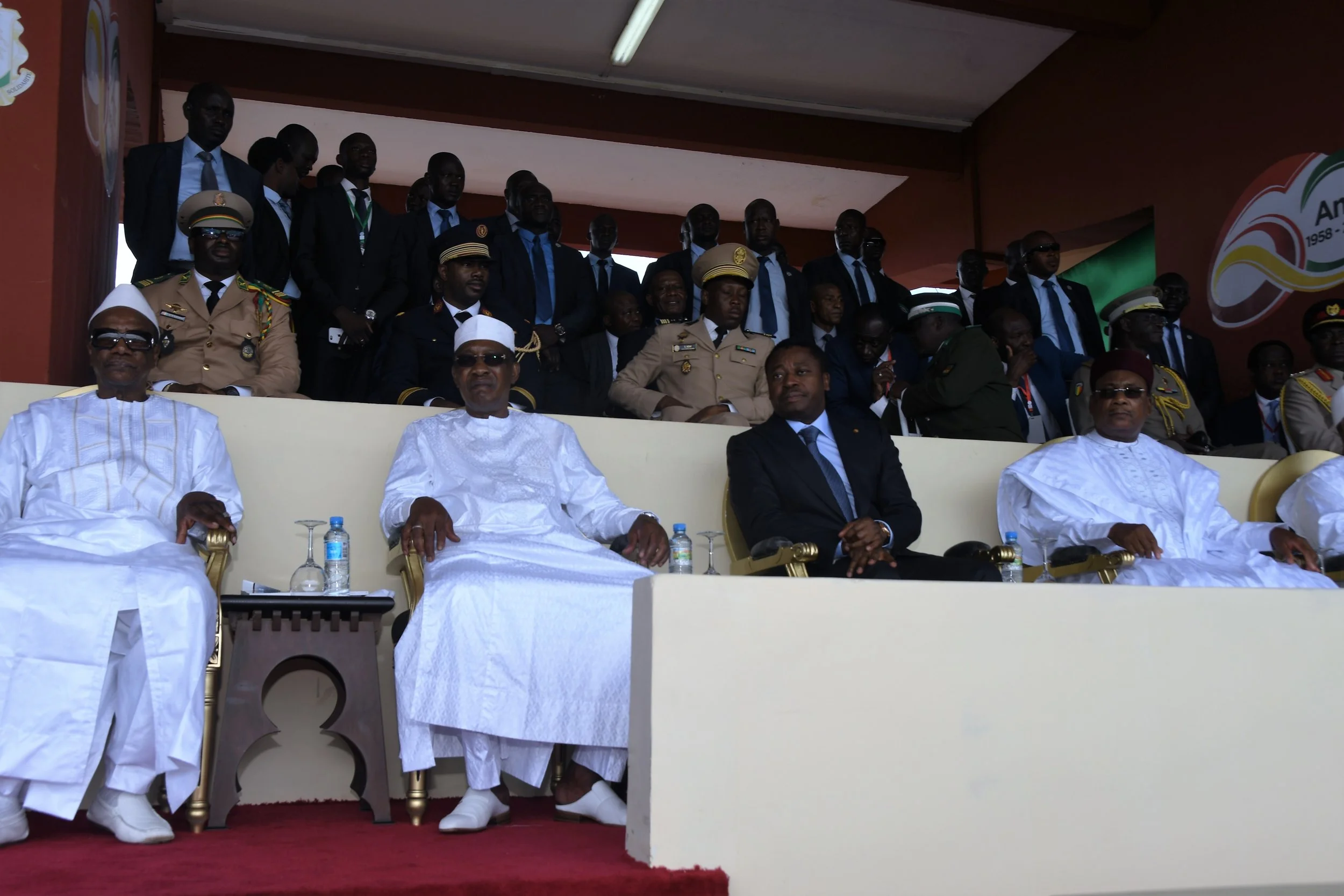 Les Présidents du Tchad, du Congo, du Togo, de la Mauritanie, du Gabon, du Sénégal, du Mali, du Burkina Faso, du Ghana et du Liberia ont honoré de leur présence ce défilé, qui s’est déroulé dans une atmosphère de grande et belle fête, dans un stade plein à craquer.